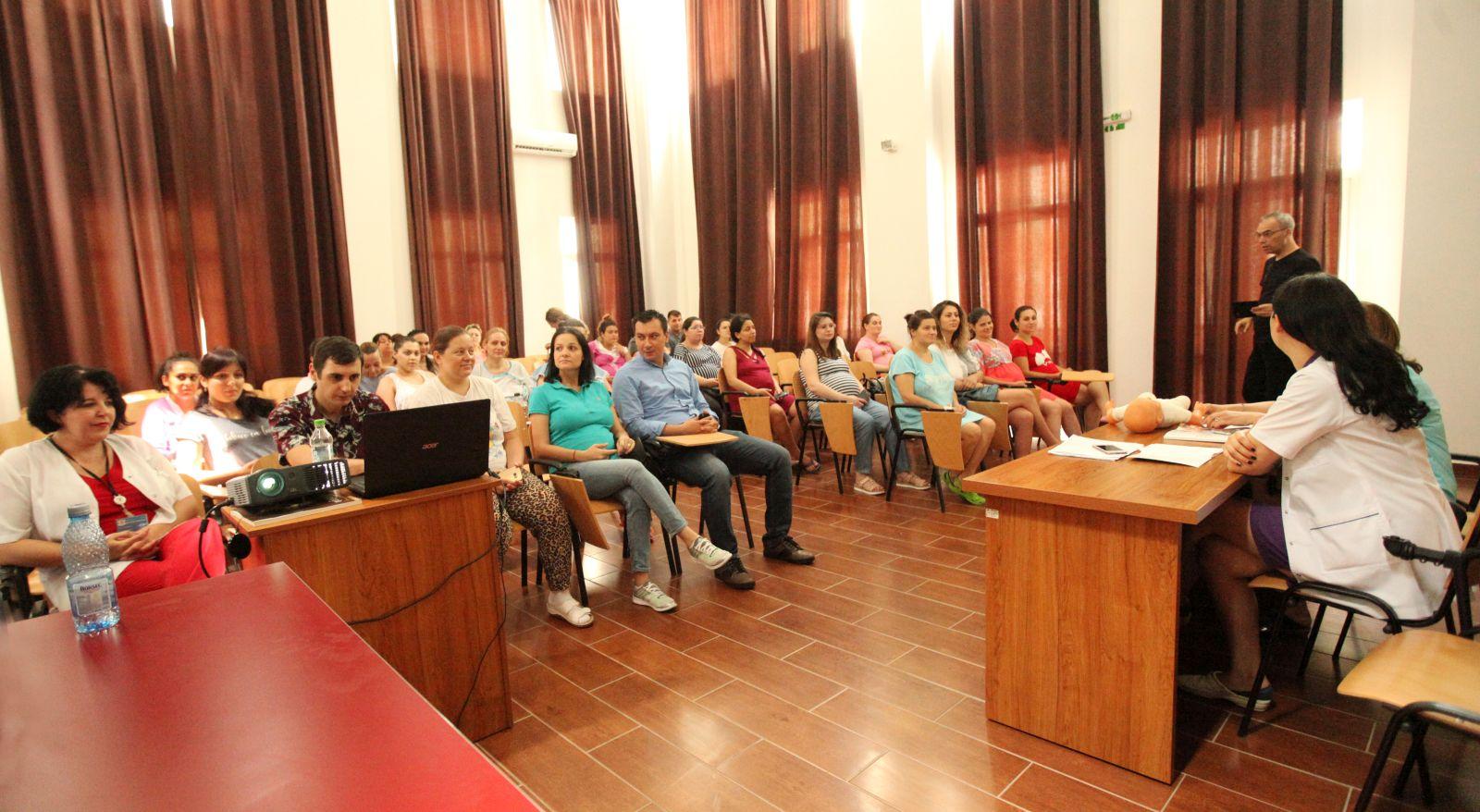 Ultimul modul al cursului „Școala Părinților” s-a desfășurat la începutul săptămânii la maternitatea Spitalului Clinic Prof. Dr. Panait Sîrbu. Nutriționistul Maria Spiridon și kinetoterapeutul Cerasela Radu au împărtășit din cunoștințele și experiența lor viitorilor părinți, răspunzând la întrebări legate de masajul nou-născutului, de gimnastica recomandată mamei și bebelușului.